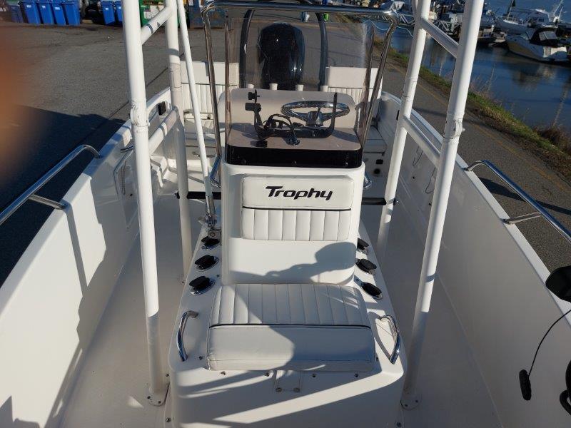The Trophy 18TBAY is well regarded for its stable modified-V hull, shallow draft, and versatile layout—equally suited to inshore fishing, cruising, and family watersports. The wide beam and efficient hull design deliver a smooth, predictable ride while maximizing usable deck space.