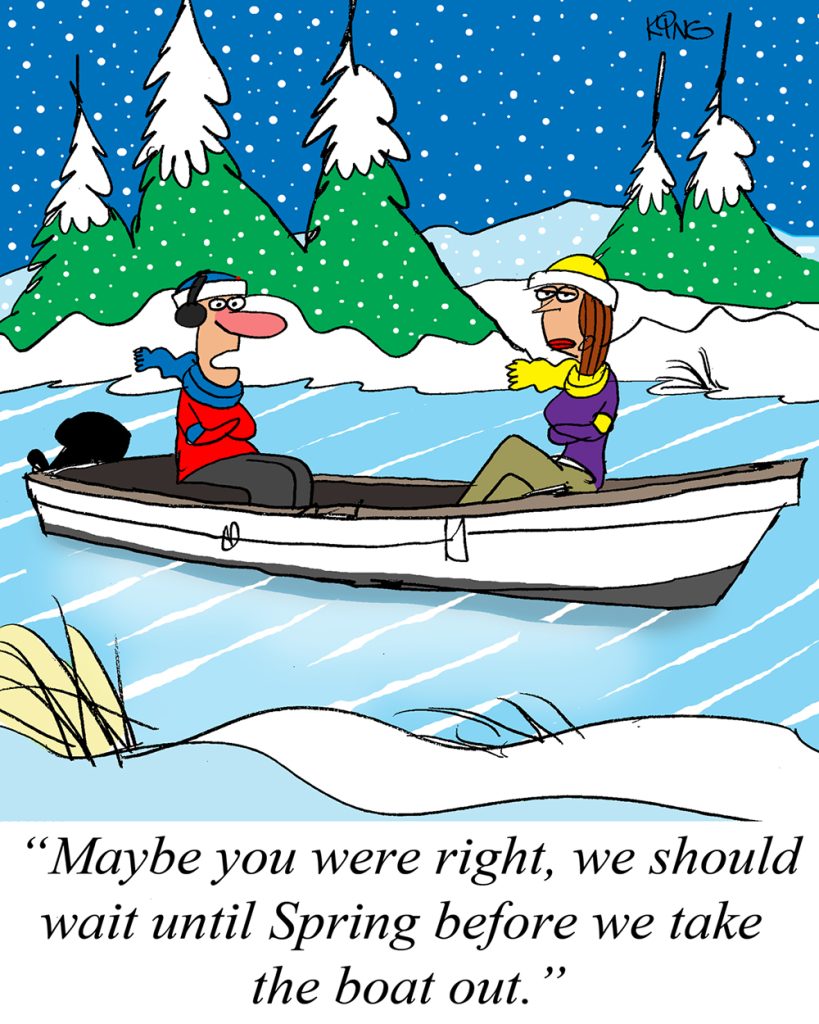 Growing up, Jerry spent many years on a boat on Canadian lakes with his grandfather inspiring him to create a lot of boating cartoons,.