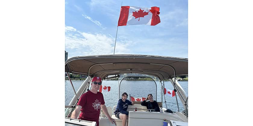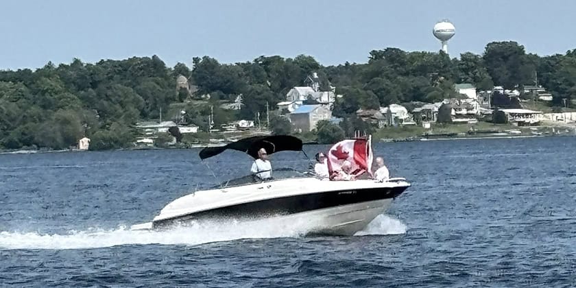 “The Elbows Up for Canada event in Ogdensburg NY reportedly drew a couple hundred people today. While the flotilla aspect was quite small, it was very kind of some of the participants to make their way up river and show support. Some of my family and I greeted them on the water.
