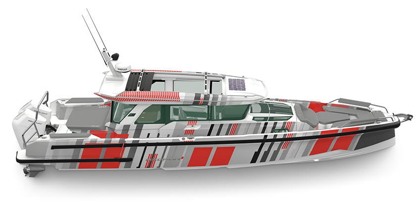 SPECS: LOA: 42’7” Beam: 12’5” Weight: 19,900 lbs Engines: Twin/ triple outboard packages available (max 900hp)