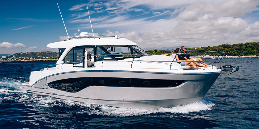 The Antares 12 Coupe is a new all-season cruiser from Beneteau that offers everything from weekend hops across the lake to a multi-day cruise down the coast. Favourite features include the large electric glass roof that lets in beautiful light and makes the cockpit feel even more spacious than it is. The disappearing glass door between cockpit and wheelhouse creates both visual and practical space, while the back deck does spaciousness in its own way with an electrically deployed starboard terrace. The Antares 12 Coupe comes set up with Seanapps so you can monitor batteries, navigation and other features all from your phone. Engine packages include 2x400hp or 3x300hp outboards.