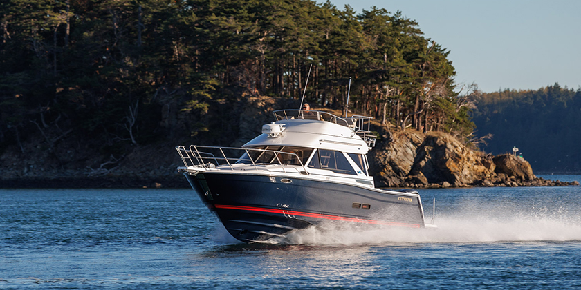 The new 46 Coupe from Aquila maximizes space, even for a catamaran. It’s massive 17’11” beam offers huge living and socializing spaces at the stern, bow and in the salon. Each cabin has a private en-suite, and the interior is well-appointed and tastefully designed. As you’d expect from a company with a history of making quality catamarans, the 46 Coupe combines comfort with performance. The double-stepped hull and carbon fibre Aquila Hydro Glide® Foil System creates an extra smooth ride and maximizes efficiency. It’s also versatile, with both inboard and outboard power options available.
