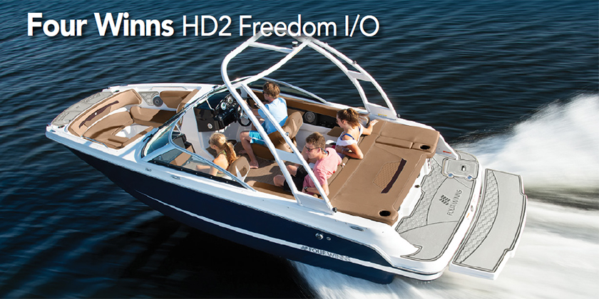 With an open bow, dual helm, big aft sunpad and swim platform, the Four Winns HD2 I/O packs a lot of boat into its 20-foot length. The bow area has wraparound seating and an optional removable table, making this a great area for dining or drinks and an awesome spot to ride while cruising. Not only that, but the HD2 looks amazing with clean, modern lines and premium interior finishes. Standard propulsion is a MerCruiser 4.5L 250 Alpha (outboard packages also available), and other great features include Seanapps, courtesy lighting and in-floor ski storage.