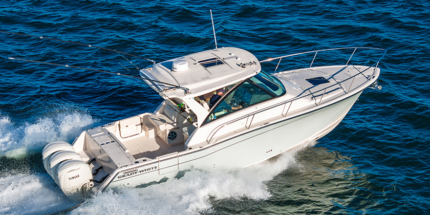 SPECS: LOA: 33’6” Beam: 11’7” Weight: TBC Engines: Twin/triple Yamaha OB packages available (max 1,050hp) MSRP: Contact Dealer www.gradywhite.com