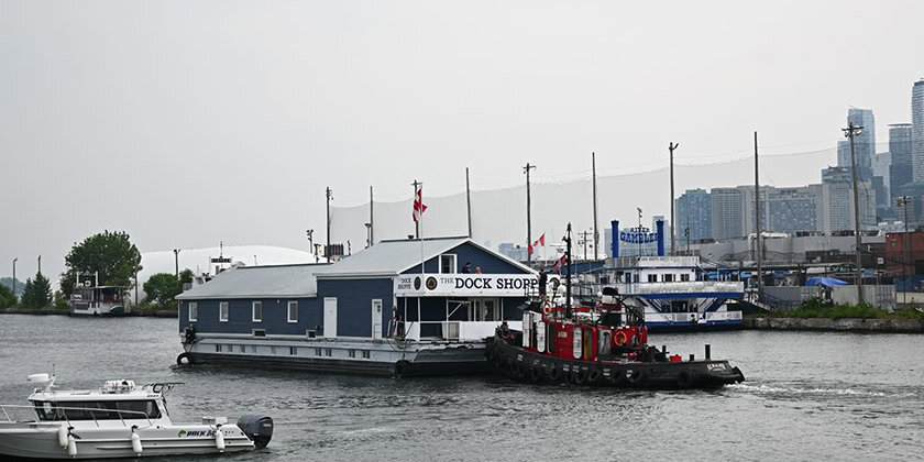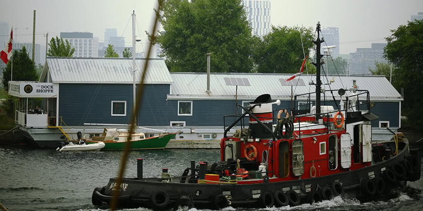 The Dock Shoppe chandlery has been run by Mike Pecar since 1987 in a number of locations: Harbourfront Pier 4, Queen’s Quay, Harbourfront again across the road next to the beer store and more recently took over the Bobbin, a barge moored in The Ship Channel off Cherry Street in Toronto’s port lands that had previously been home to Bob Mew’s Hurricane Canvas. The Dock Shoppe store is a very attractive retail environment floating on the barge foundation.
