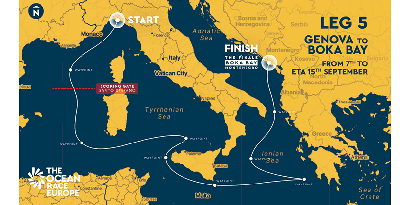 Le 7 septembre, les bateaux ont quitté Gênes, en Italie, et devaient mettre huit jours pour l’étape 5, arrivant dans la baie de Boka, au Monténégro, autour des 15 et 16 septembre.